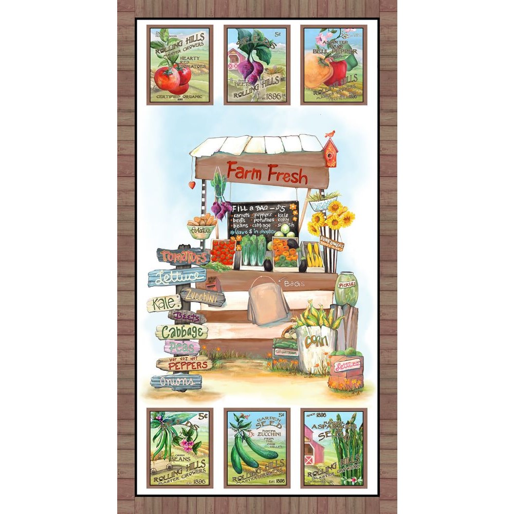 Blissful Bounty | Veggie Stand Panel - Brown | Blank Quilting💥