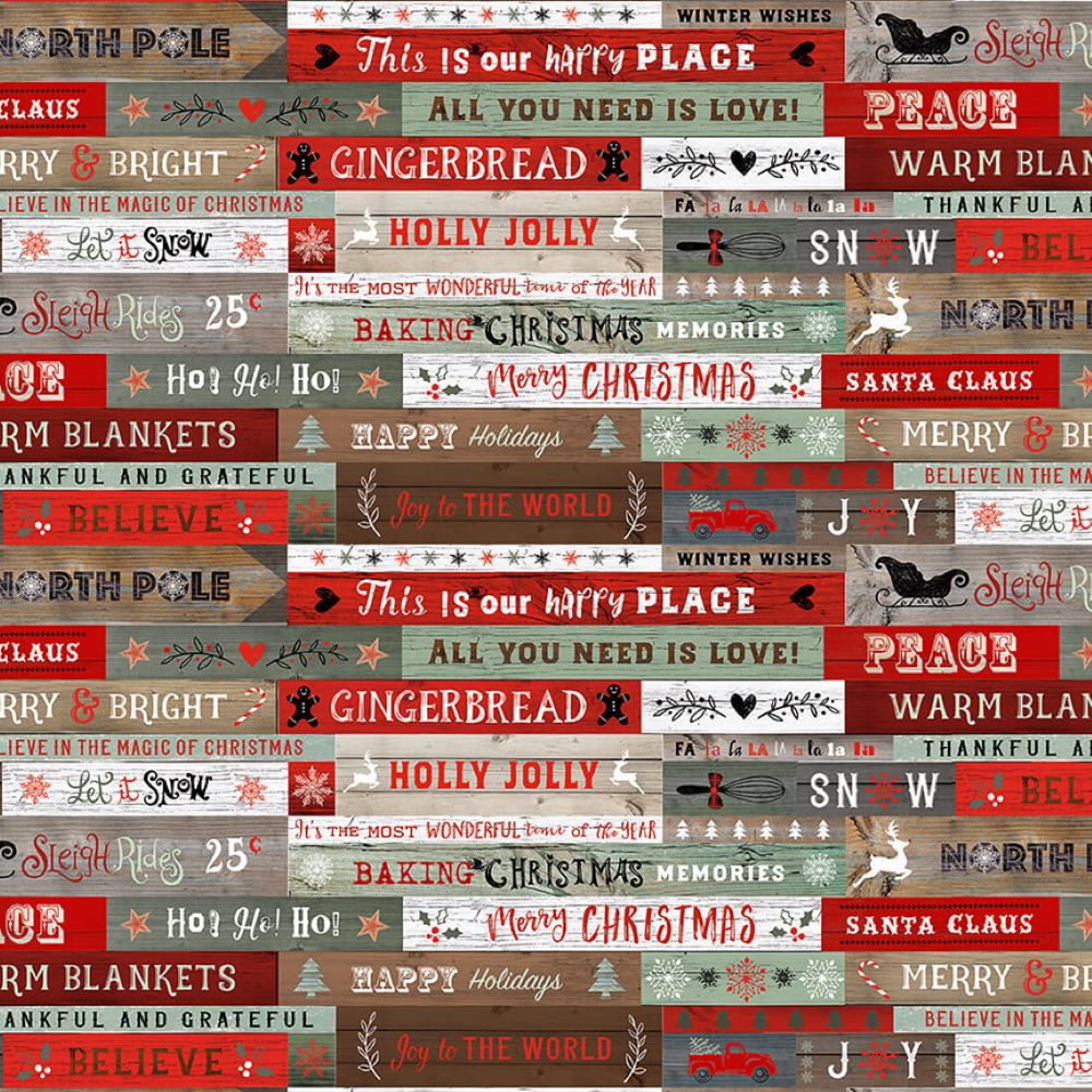 Christmas Memories | Words on Wood Grain Red/Teal | Studio e Fabrics