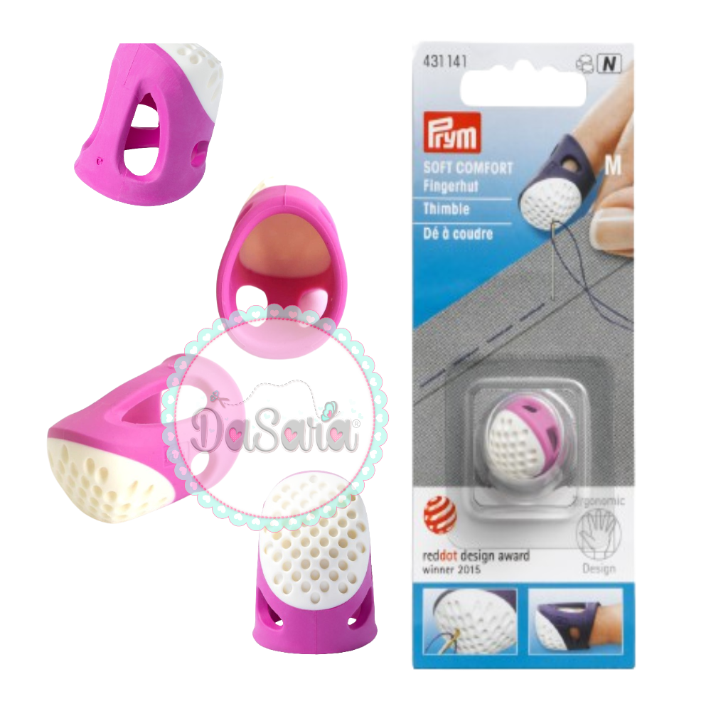 Este dedal inovador foi premiado com o Red Dot Design Award em 2015! Feito de material macio, adapta-se perfeitamente ao dedo e as quatro pequenas aberturas evitam a transpiração, ao trabalhar por períodos mais longos. A ponta do dedal 'Soft Comfort' é feita de plástico rígido branco, com pequenos orifícios para facilitar a orientação e manuseio da agulha, mesmo em tecidos grossos e com várias camadas.