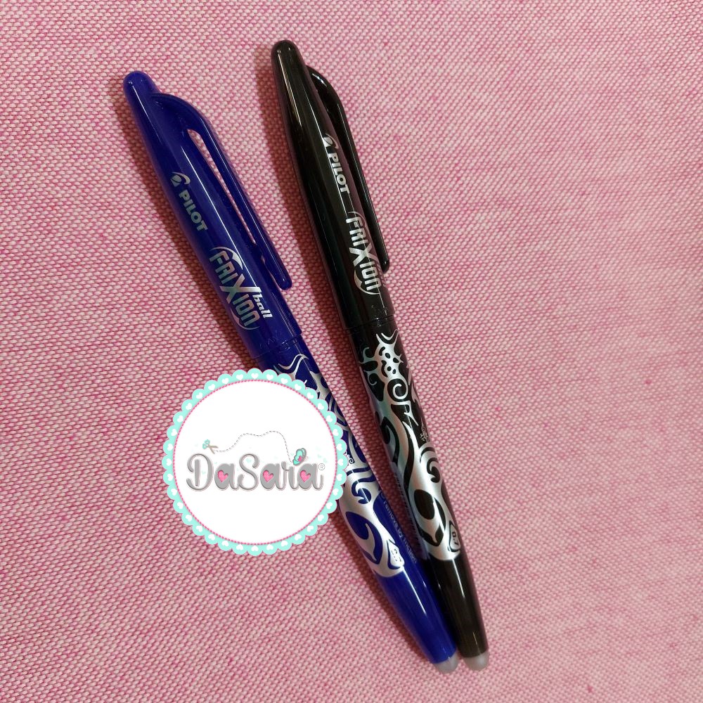Caneta com tinta sensível à temperatura, que pode ser apagada com a borracha afixada na extremidade ou com uma simples passagem com ferro de engomar.