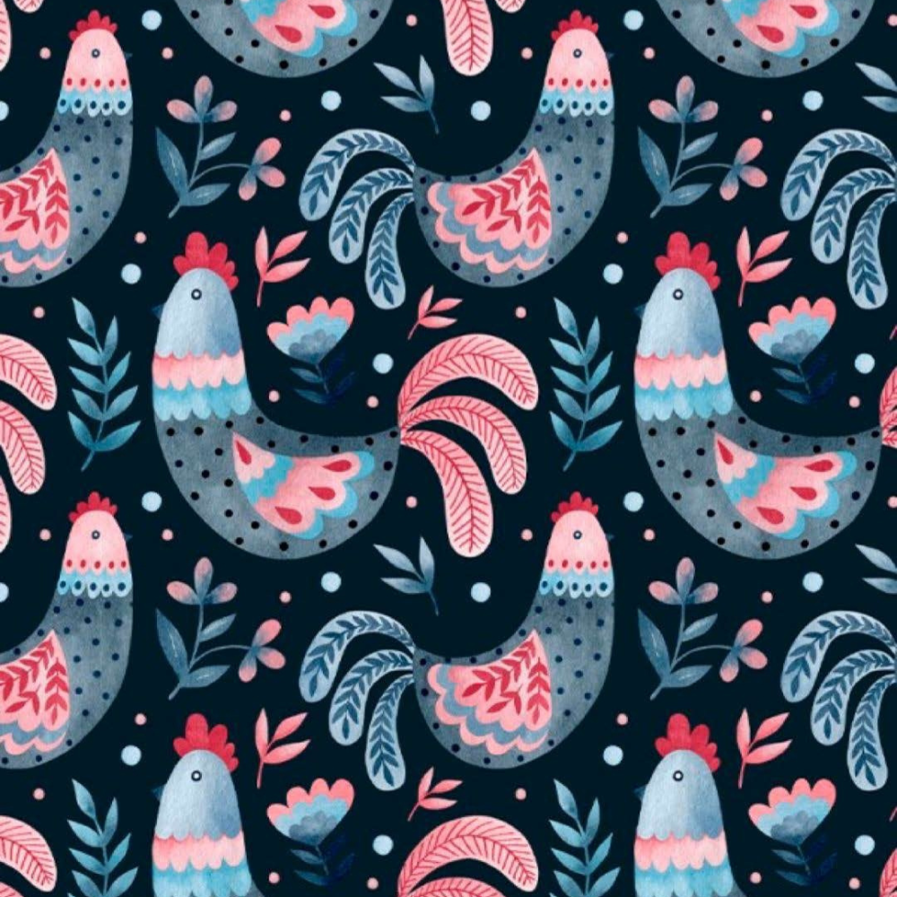 Galinhas Folk - Fundo Azul Marinho | Fabricart