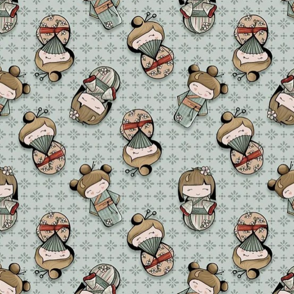 Kokeshi - Fundo Verde | Fuxicos e Fricotes