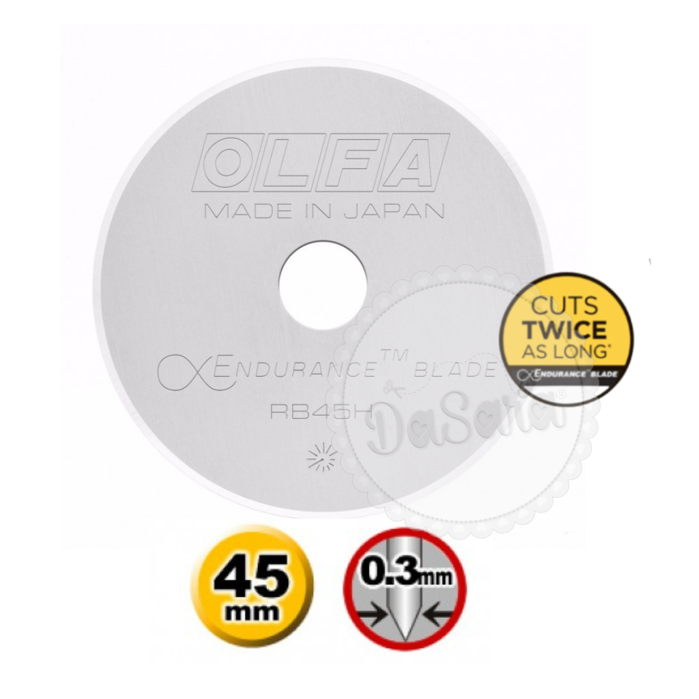Lâmina de 45mm OLFA®, super afiada e de larga duração, corta duas vezes mais que as lâminas normais.