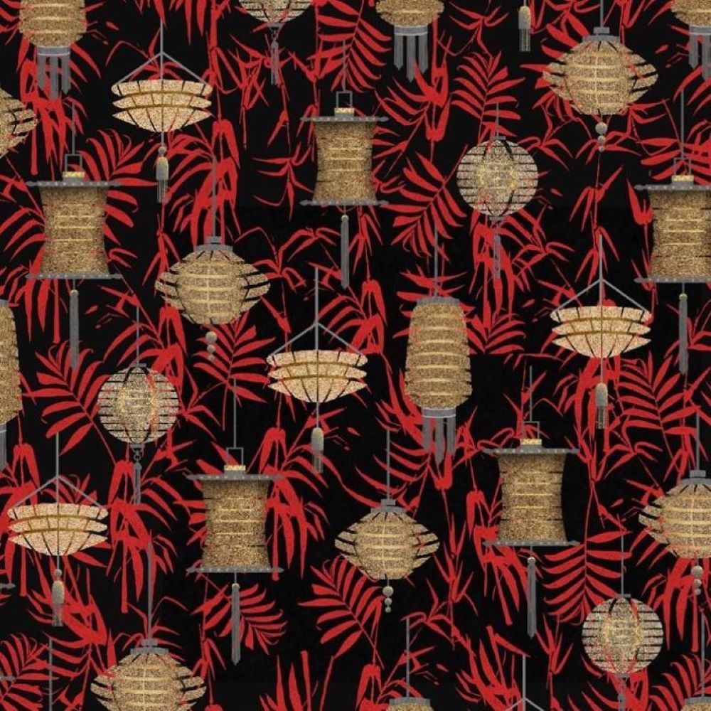 Composição: 100% Algodão Marca: Blank Quilting Designer : Nathalie Runghen Coleção: Narumi Padrão: Lanternas Japonesas Cor principal: Preto