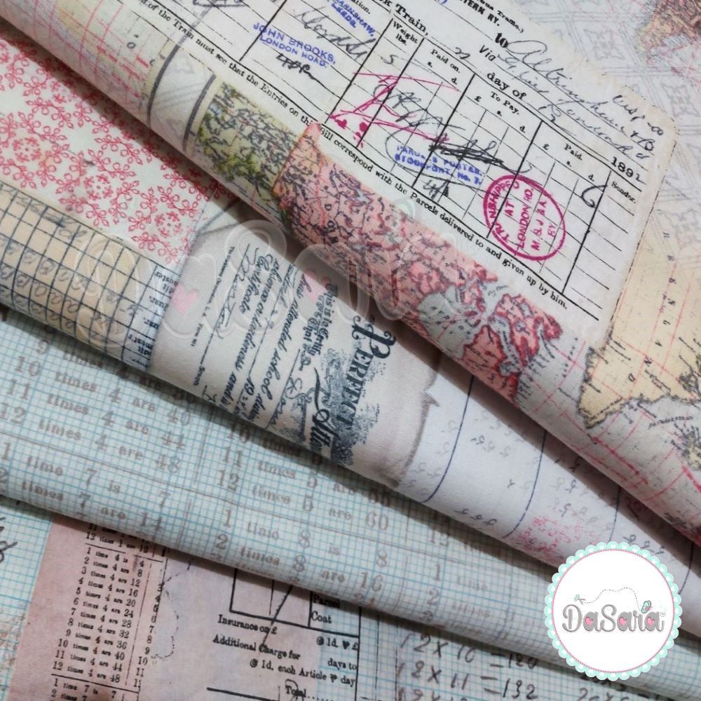 Composição: 100% Algodão Marca: Free Spirit Designer : Tim Holtz Coleção: Memoranda III Padrão: Tabuada Cor principal: Aqua