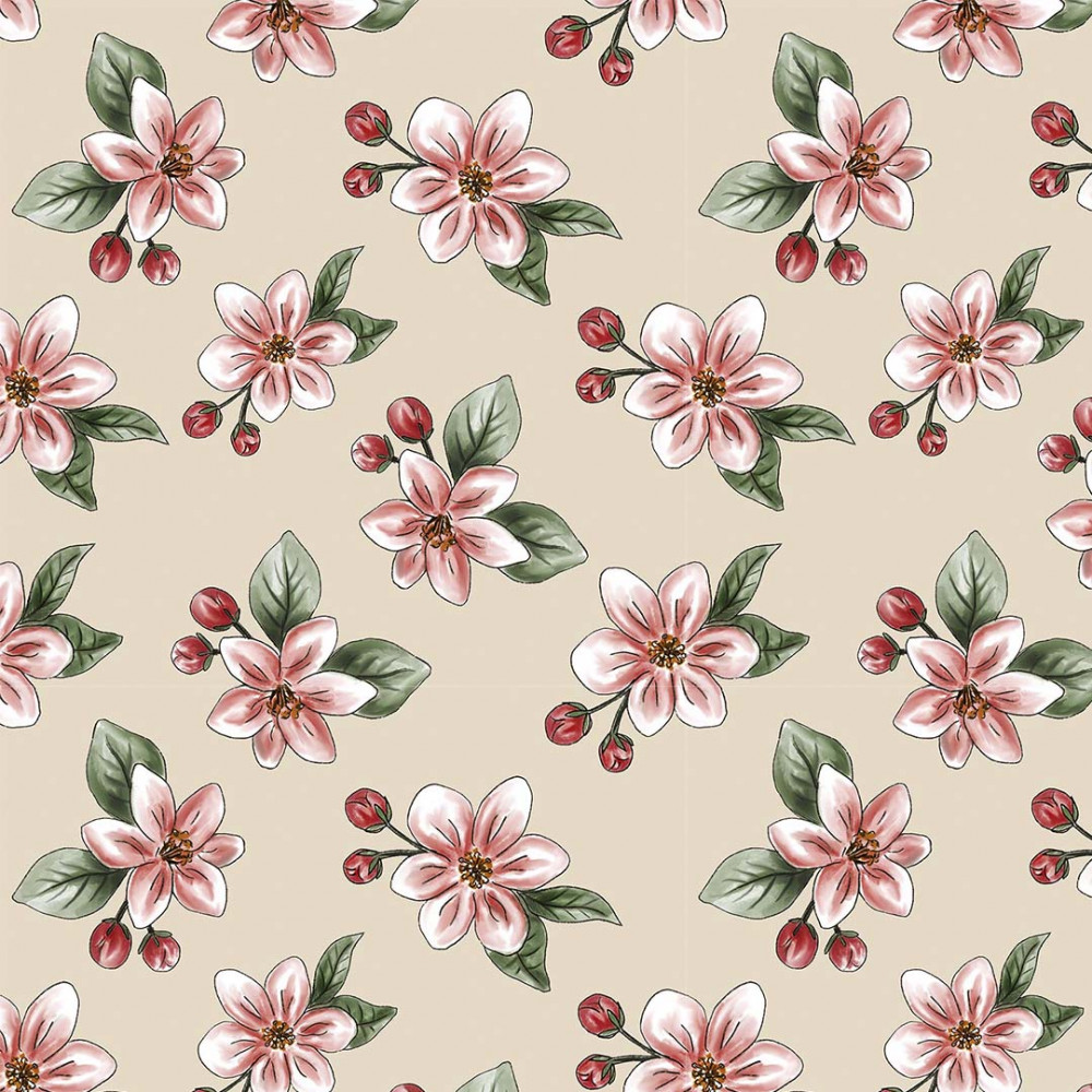 NUDE APPLE BLOSSOM :: RED BLOSSOM | DIGITAL | FABRICART