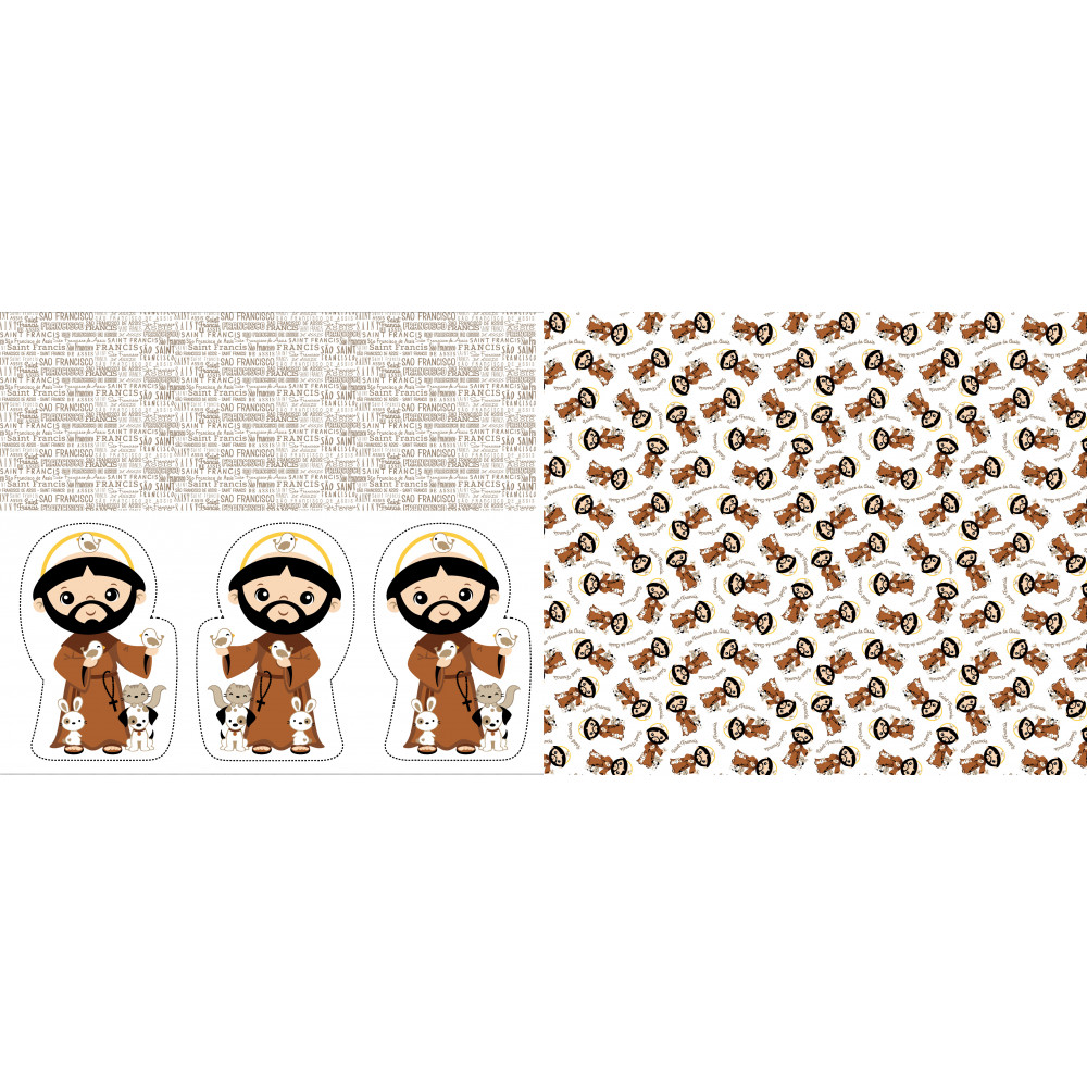 A Coleção Santinhos vem com o formato pillow para as almofadinhas, uma faixa com o nome do respetivo santinho e o fundo com os santinhos, tudo isso no mesmo painel !!