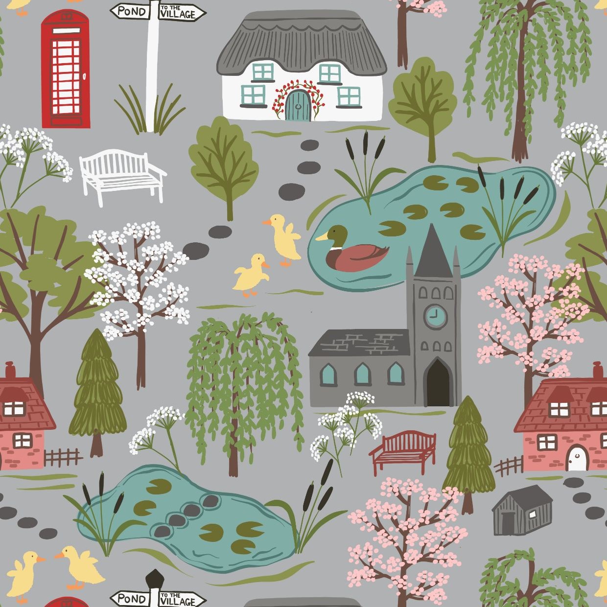 THE VILLAGE POND :: VILLAGE SCENE | LIGHT GREY
