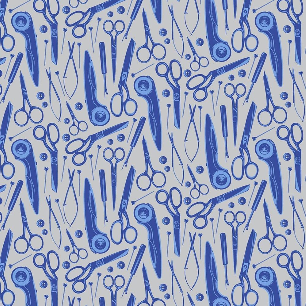 Composição: 100% Algodão | 150gr/m² Marca: Free Spirit Coleção: Home Made Designer: Tula Pink Padrão: Costura; Acessórios de costura Cores: Azul e Branco |