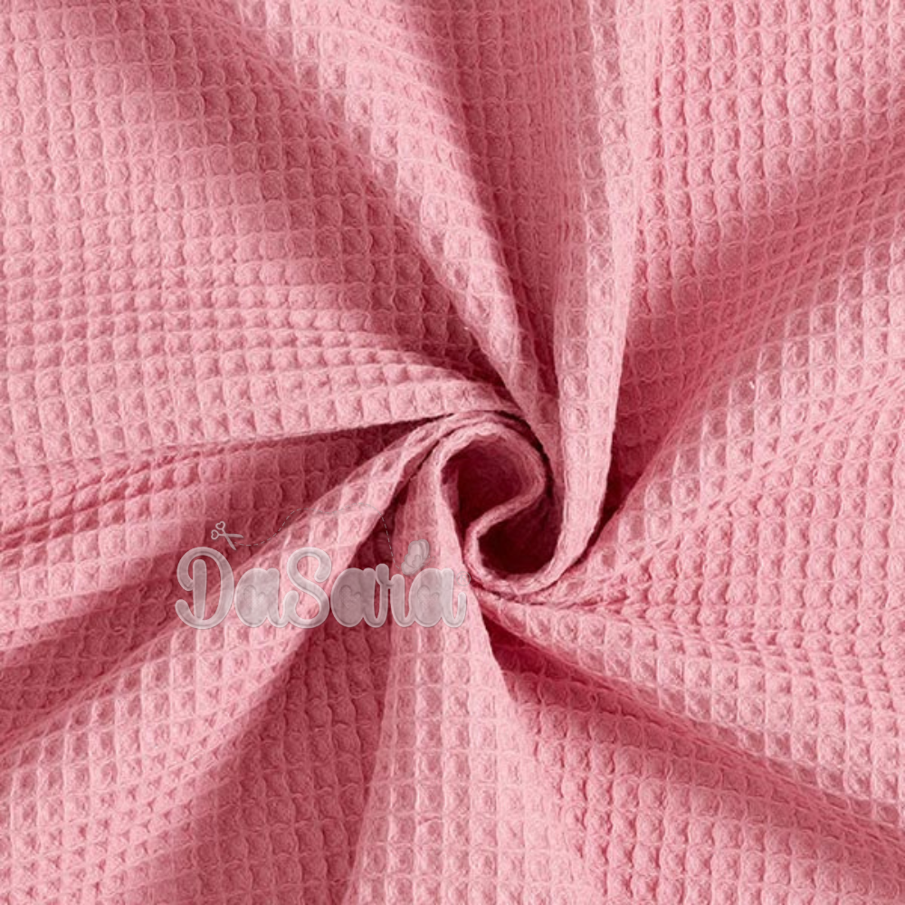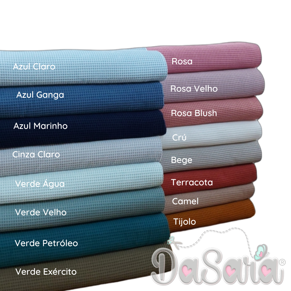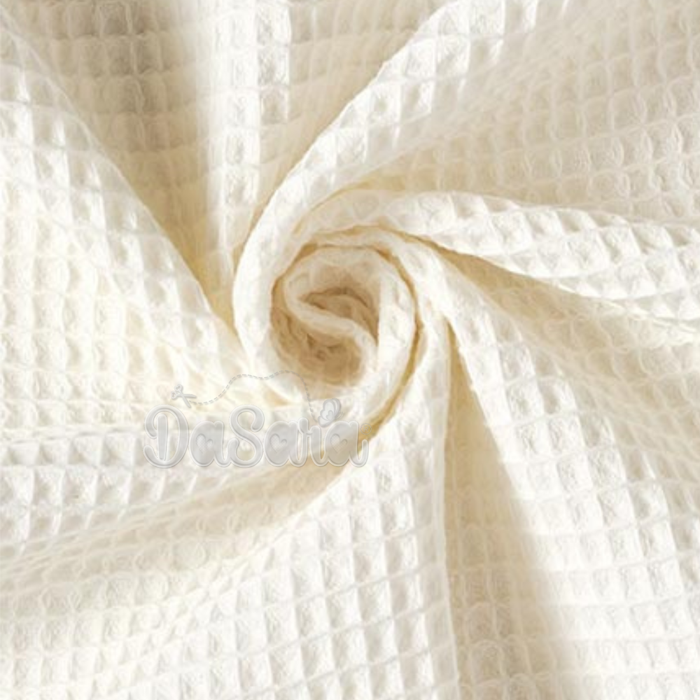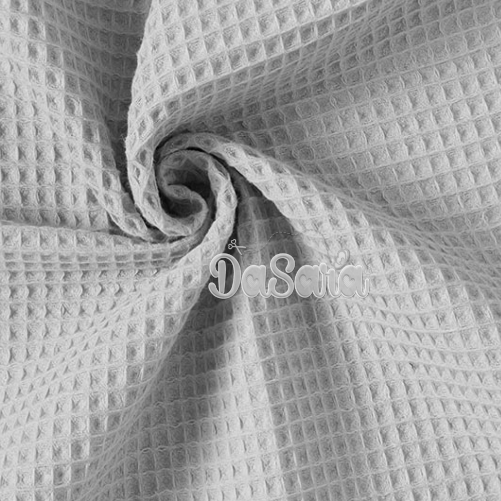 Tecido com textura de efeito waffle, macio e muito absorvente.