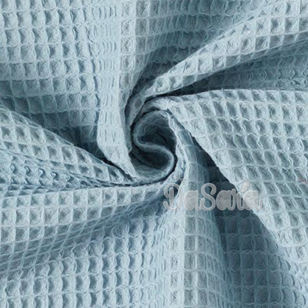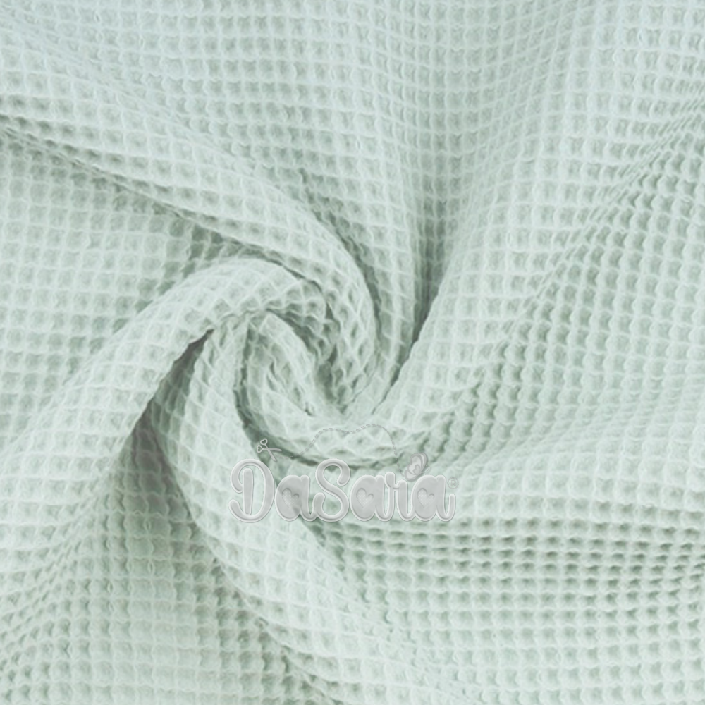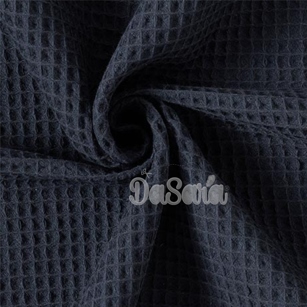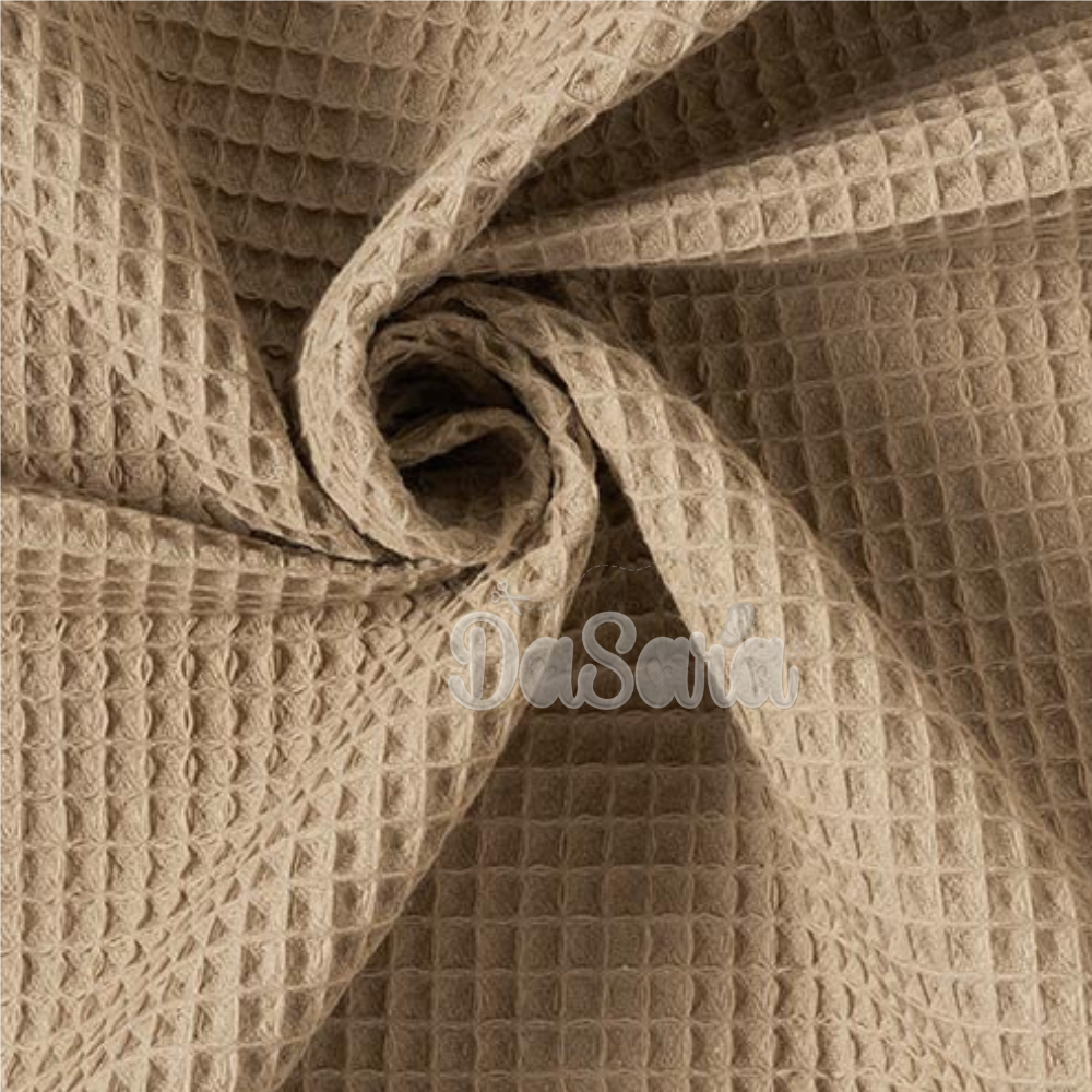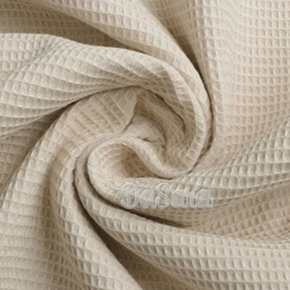 Tecido com textura de efeito waffle, macio e muito absorvente.